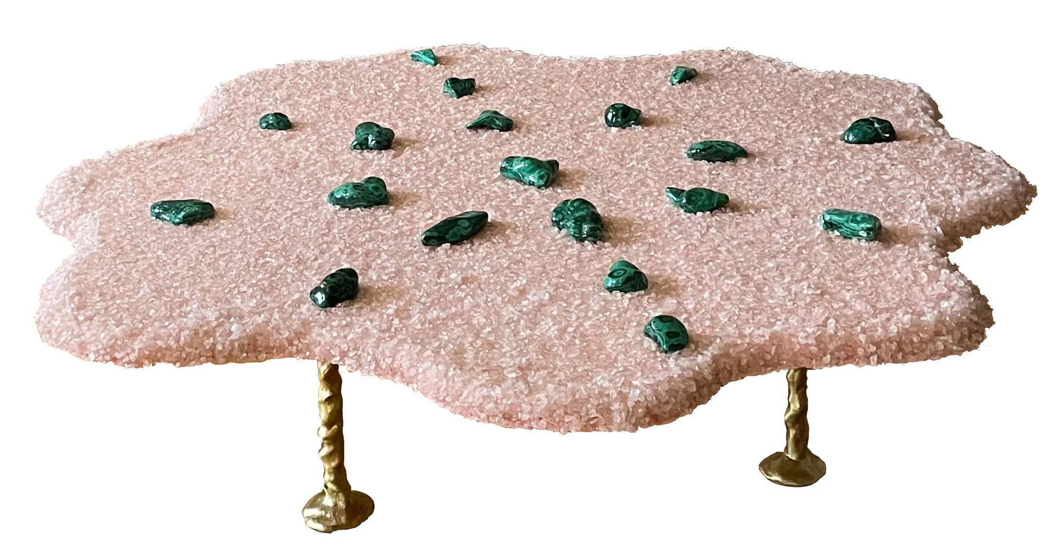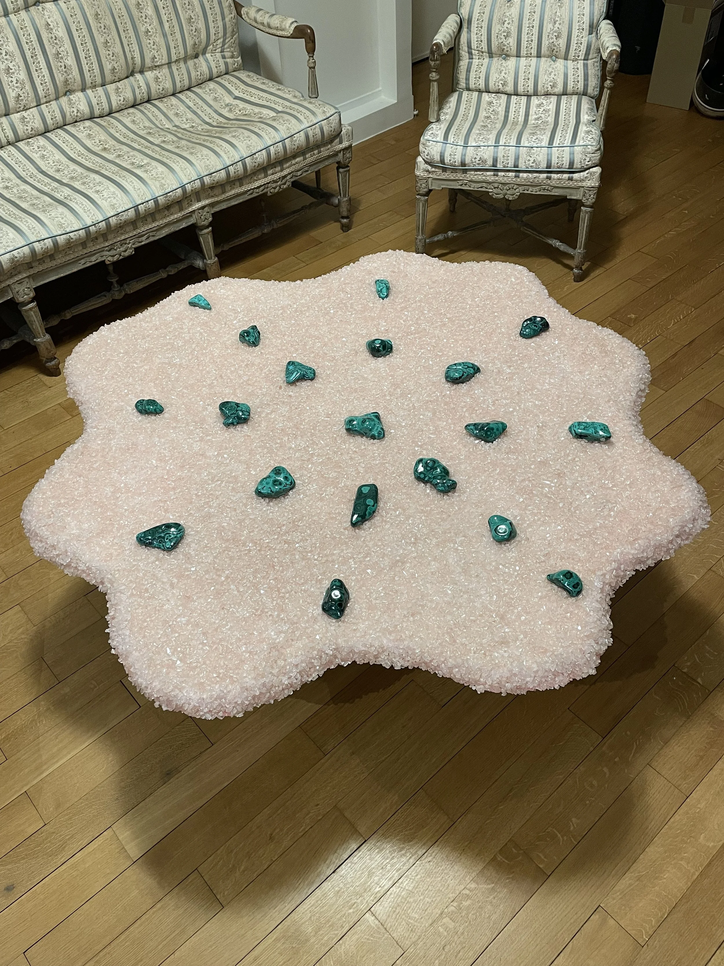 Rose quartz is the stone of love. The base of the tulip is made of pieces of aventurine, the stone of serenity, that I went to collect from Brazil. My wish for this creation was to calm the spirit so as love may blossom.