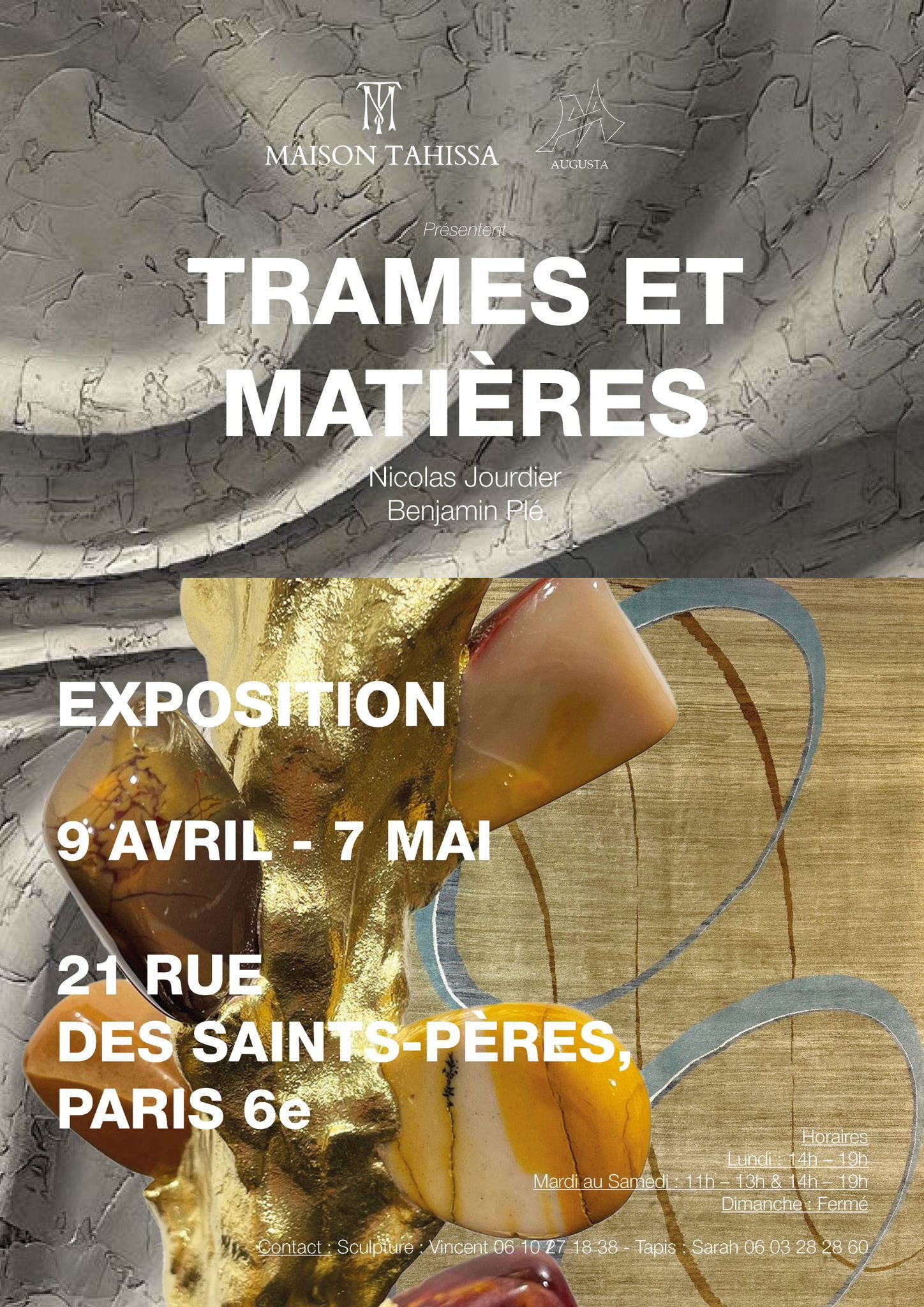 • April-May 2026: Exhibition “Trames et matières”, 21 rue des Saint Pères, Paris.